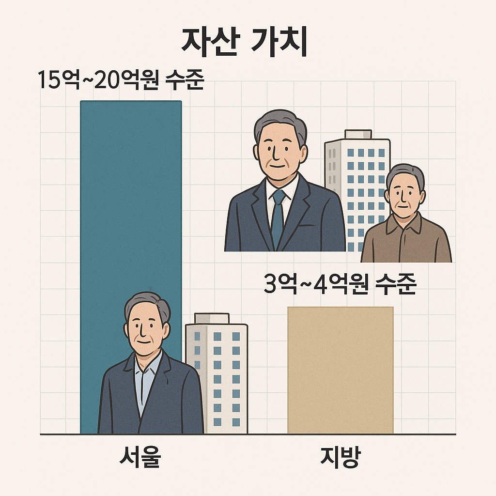 • 지방 거주자: 같은 평수 아파트 소유, 자산 가치 3억~4억 원 수준