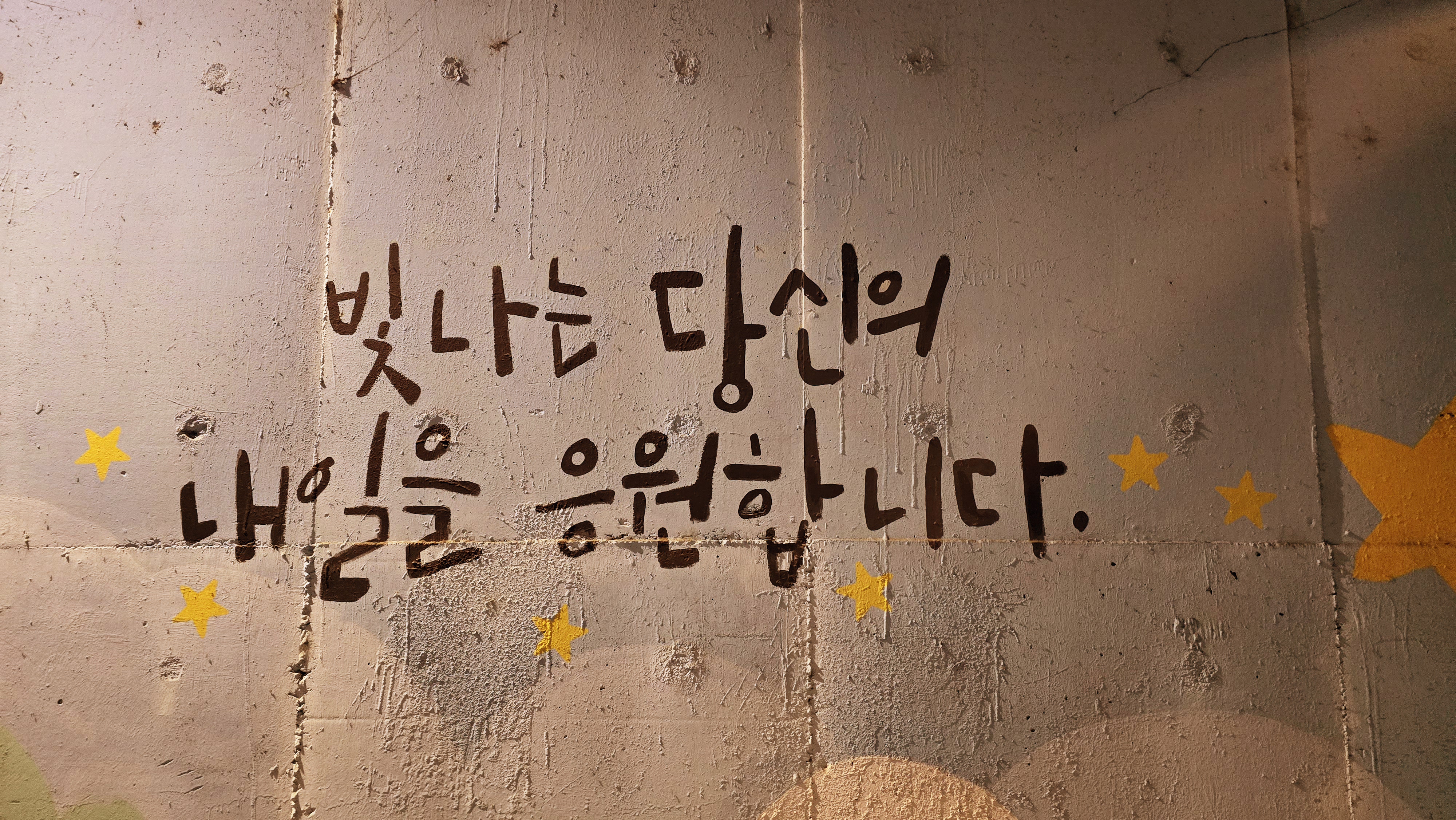 거칠고 차가운 콘크리트 벽 위에 따스하게 새겨진 한 문장,