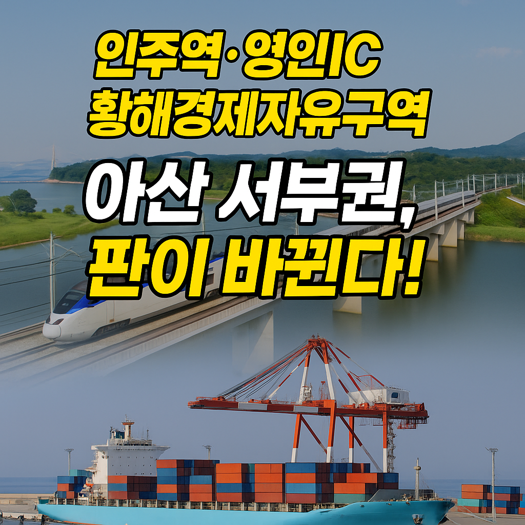 아산 서부권은 지금 **교통(인주역·영인 IC·신창 IC) + 산업(산업단지·자유구역) + 정책(경제자유구역)**이라는